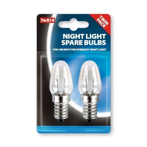 Product Name : Twin Pack EVEREADY Night Light Spare Bulbs, E14 (14mm Thread Diameter) 7w 220-240v AC, For use with The Eveready Night Light - *SEE NOTE